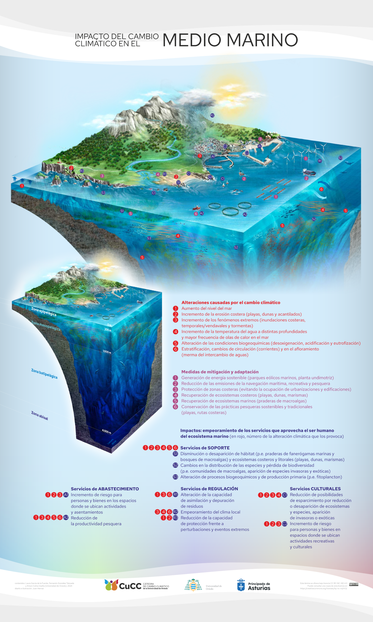 La Cátedra de Cambio Climático de la Universidad de Oviedo (CuCC) amplía su línea de materiales educativos con la creación de cinco roll-ups didácticos (uno por tema) en formato 120×200 cm, concebidos como recurso visual complementario para aula, pasillos de centros educativos, bibliotecas, jornadas y actividades de divulgación.